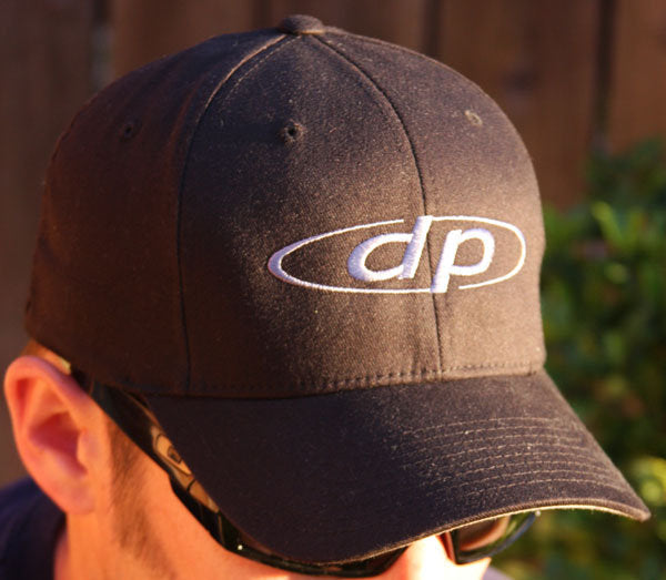 Dezert People Flexfit Hat. Black hat with dark grey DP logo. Available in size Small/Medium and Large/X-Large.